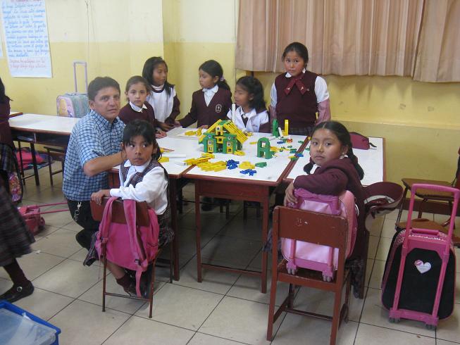 Las estudiantes del 4 "D" con su profesor Samuel Loayza Villena