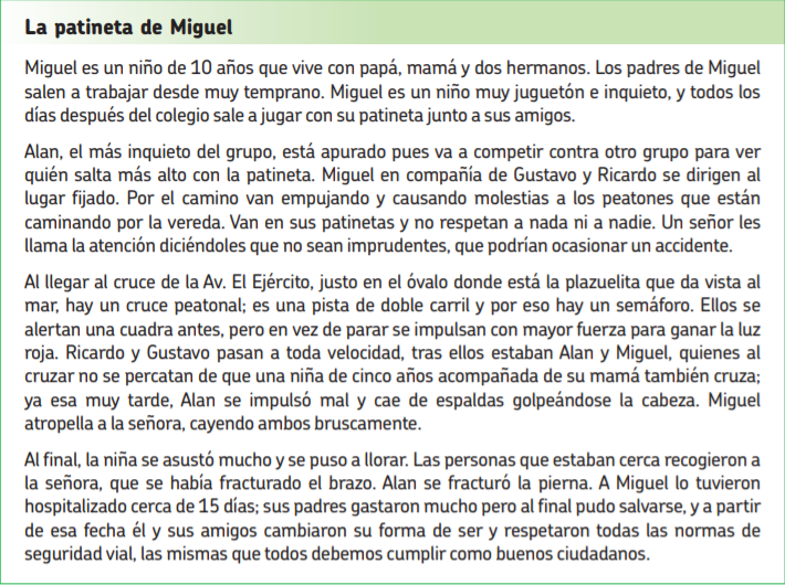 van juntos a la institución educativa. Ellos viven cerca. Elena, prima de Andrés,