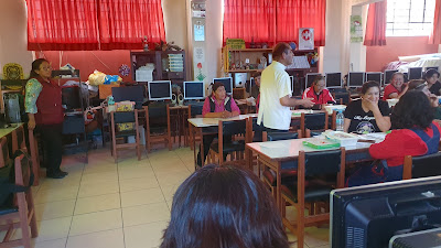 El director, subdirectores y docentes participan en la charla desarrollada por la psicóloga Jenny y el psicólogo sobre "el clima laboral".